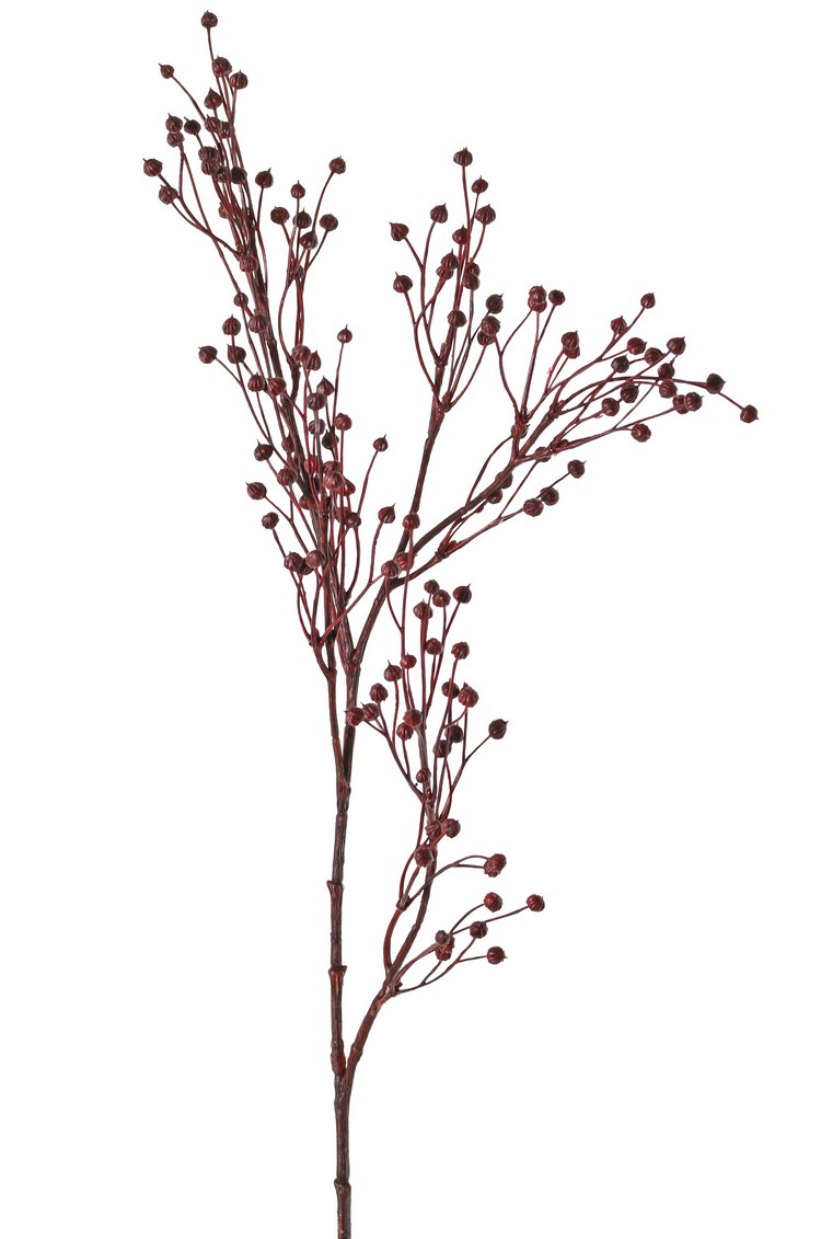 Ranunkel, 2-fach verzweigt mit 2 Polyesterblüten (Ø 8 & 5 cm) & 1 Knospe, 7 Blätter, 46 cm