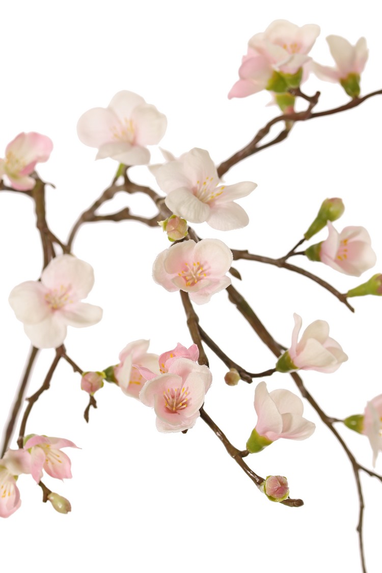 Blossombranch 'Quinn' with 23 flowers (5L / 11M / 7Sm) & 15 plastic knoppen, 2x branched, 70 cm