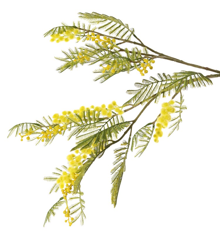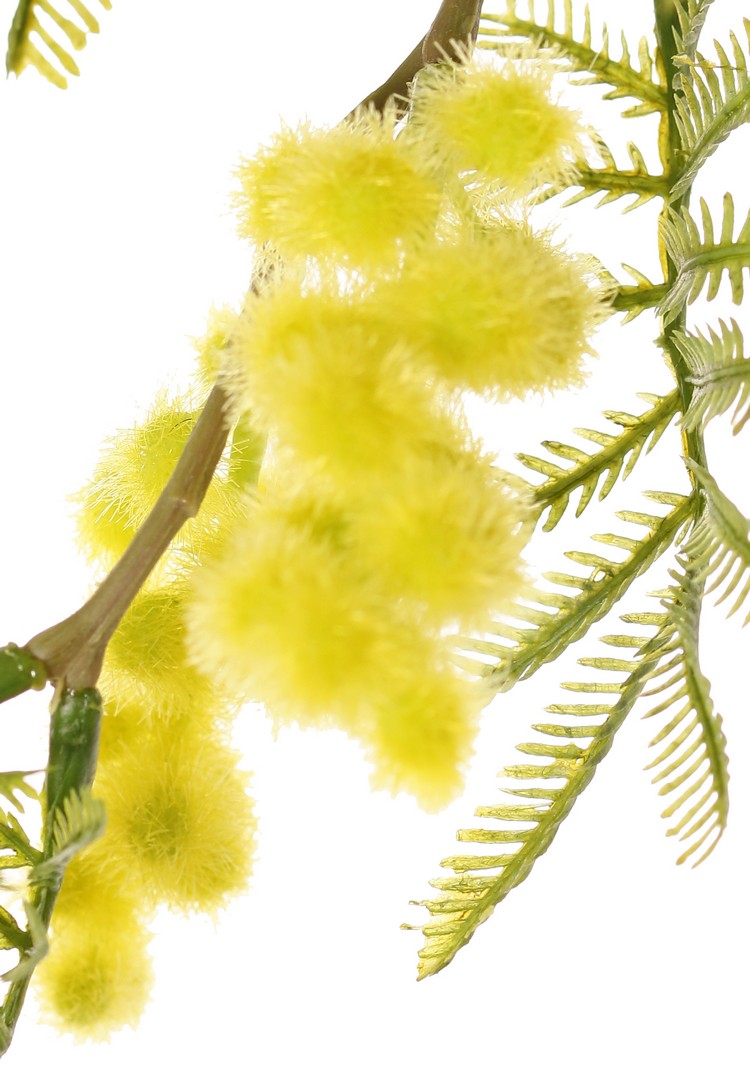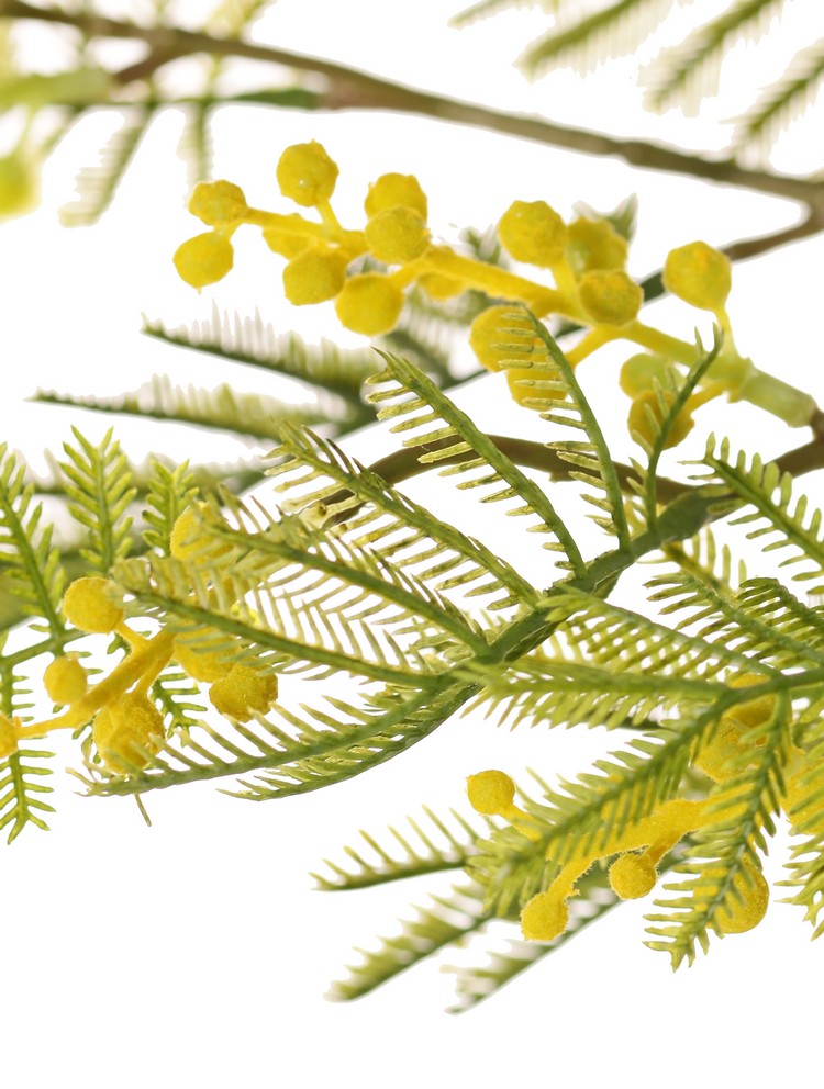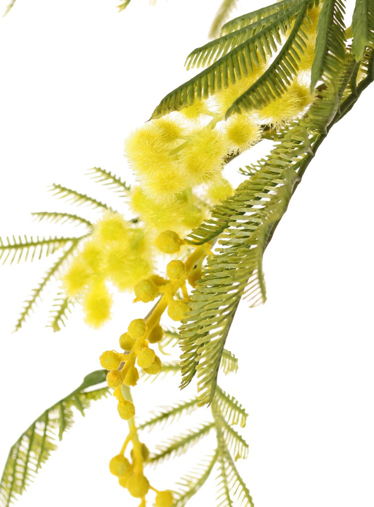 [Mimosa Branch (Acacia dealbata), 5x branched, with 25 leaf tufts, 8 bud clusters & 7 flower clusters, 77 cm, No.: 130996NA]: