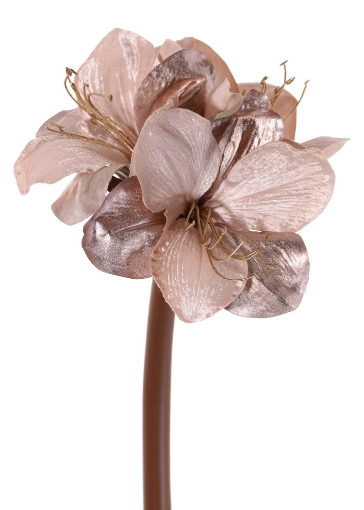 Amaryllis 'Glamour', 3 flores Ø 9 cm, a. 14 cm, (terciopelo y poliéster), estambres de plástico dorado, 69 cm