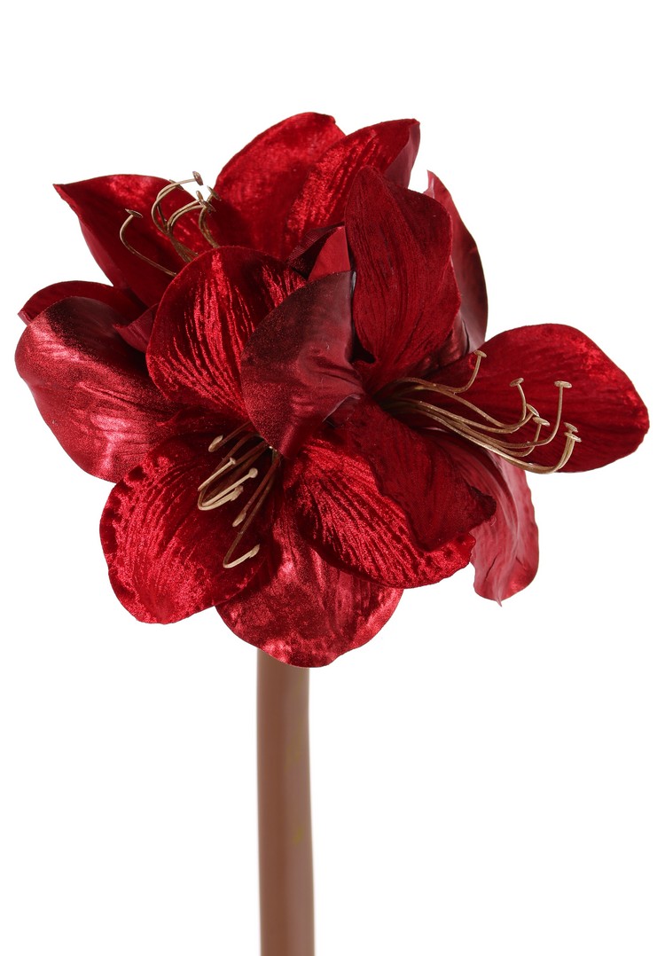 Amaryllis 'Glamour', 3 flores Ø 9 cm, a. 14 cm, (terciopelo y poliéster), estambres de plástico dorado, 69 cm
