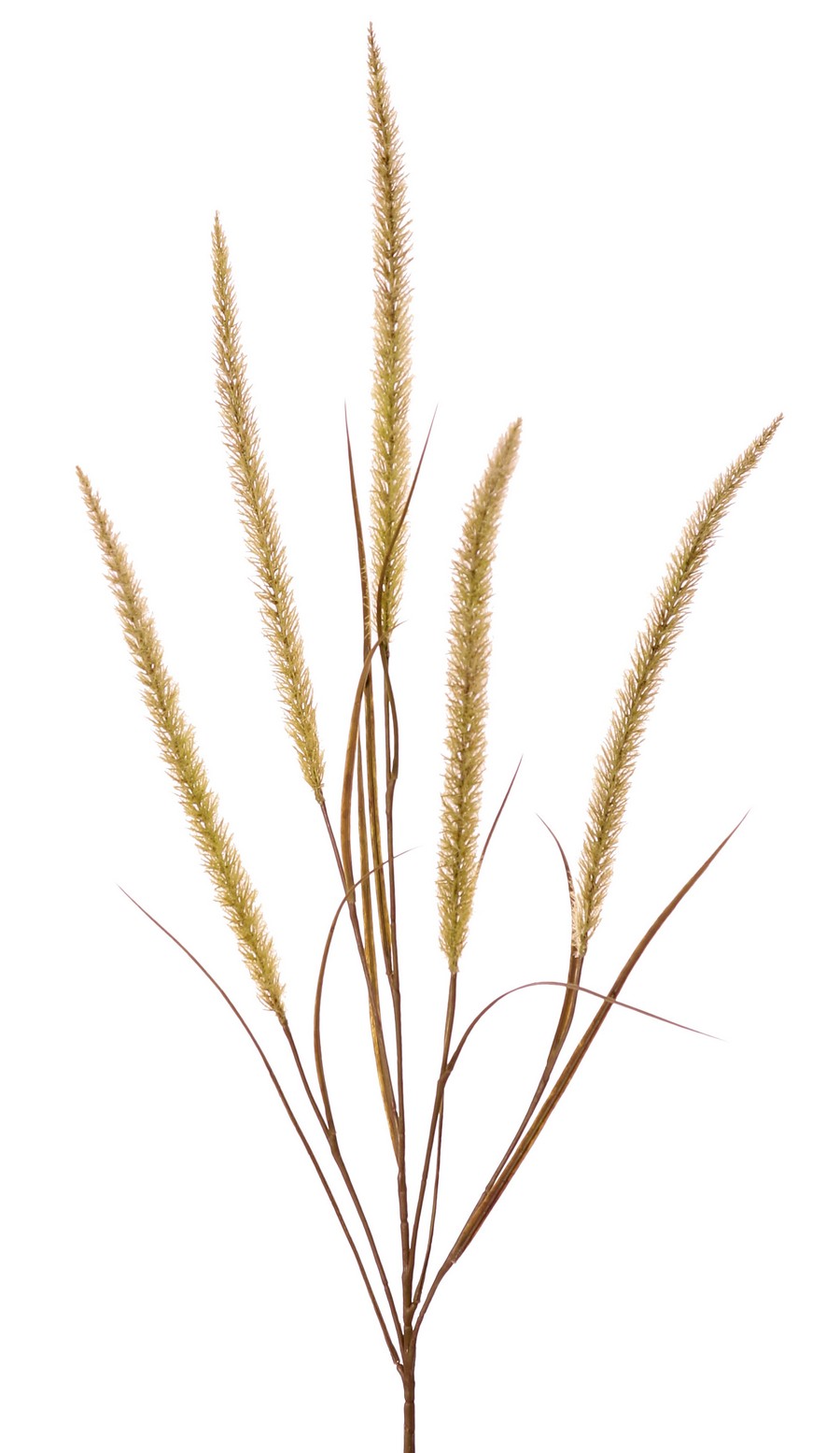 Pennisetum con 5 flores flocadas y 10 hojas de plástico, tallo de plástico verde, 135 cm