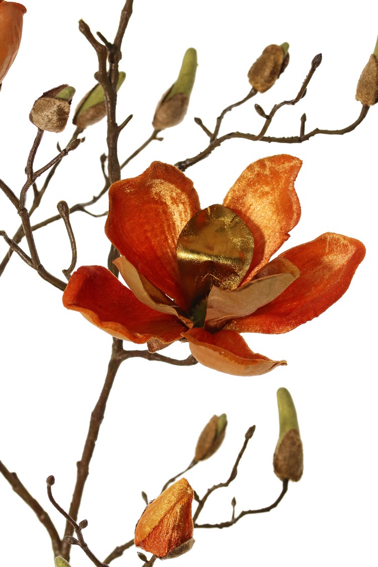 Rama de magnolia, 5 ramas, 4 flores, 5 capullos grandes, 17 capullos pequeños, 107 cm