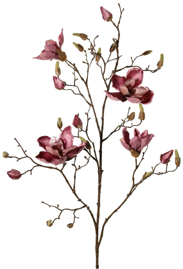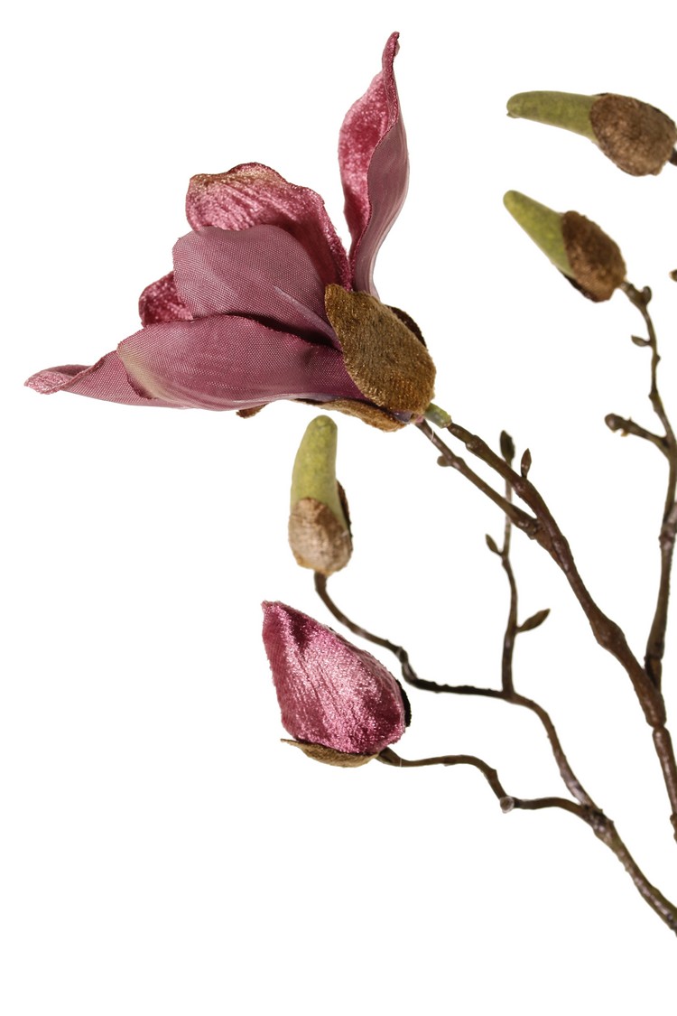 Rama de magnolia, 5 ramas, 4 flores, 5 capullos grandes, 17 capullos pequeños, 107 cm