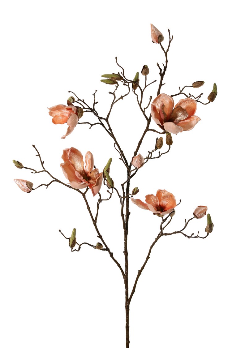 Rama de magnolia, 5 ramas, 4 flores, 5 capullos grandes, 17 capullos pequeños, 107 cm