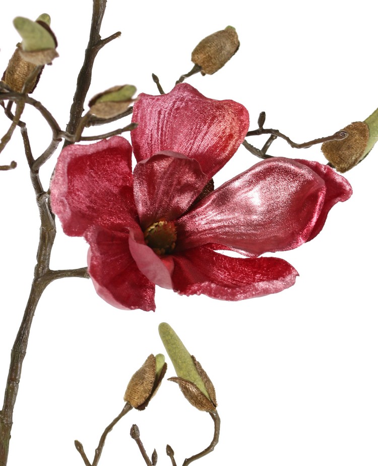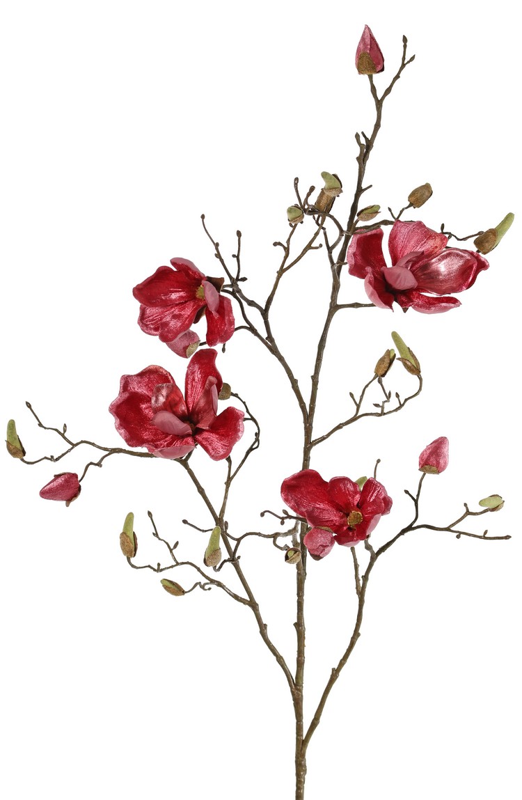 Rama de magnolia, 5 ramas, 4 flores, 5 capullos grandes, 17 capullos pequeños, 107 cm
