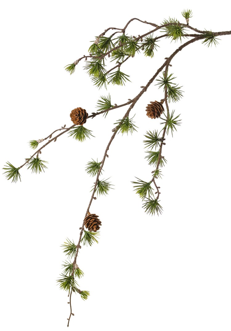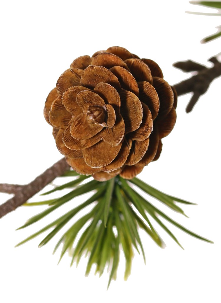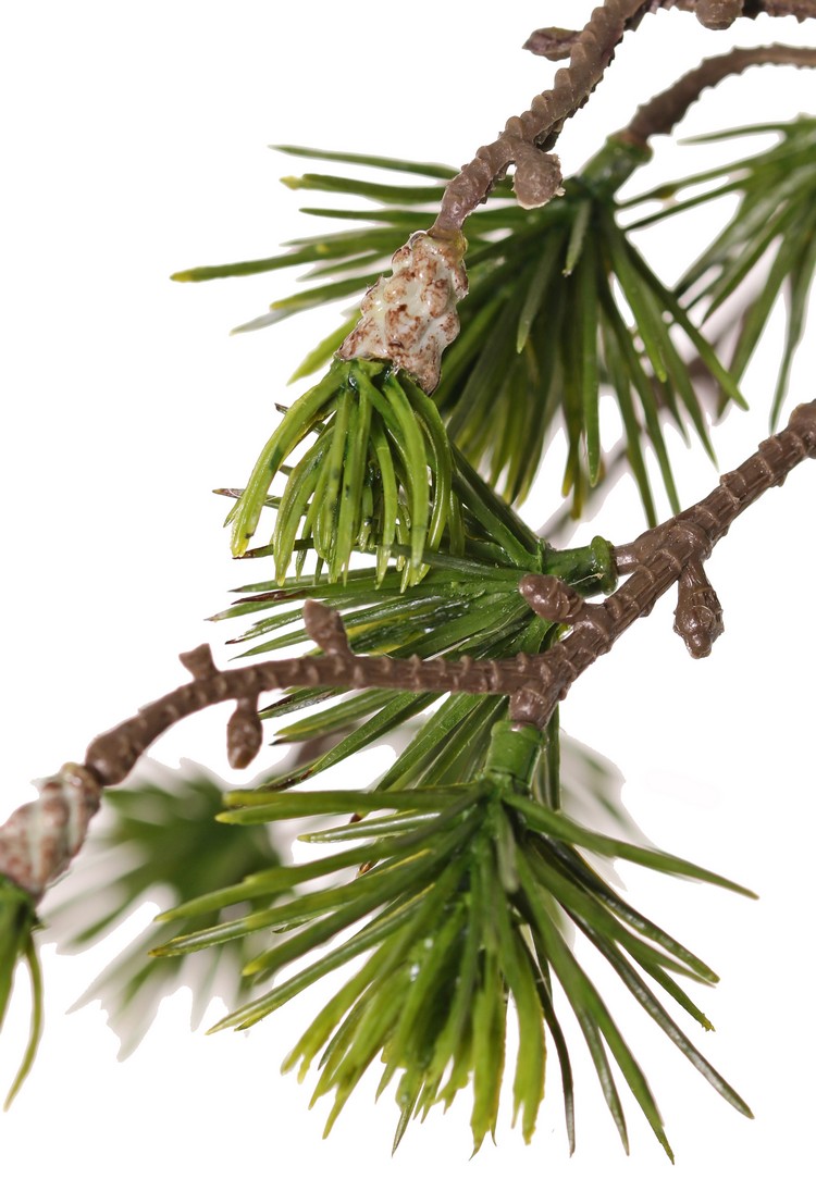 Branche de mélèze (Larix sibirica) 'de luxe' avec 40 touffes d'aiguilles en plastique & 3 cônes en plastique, 93 cm