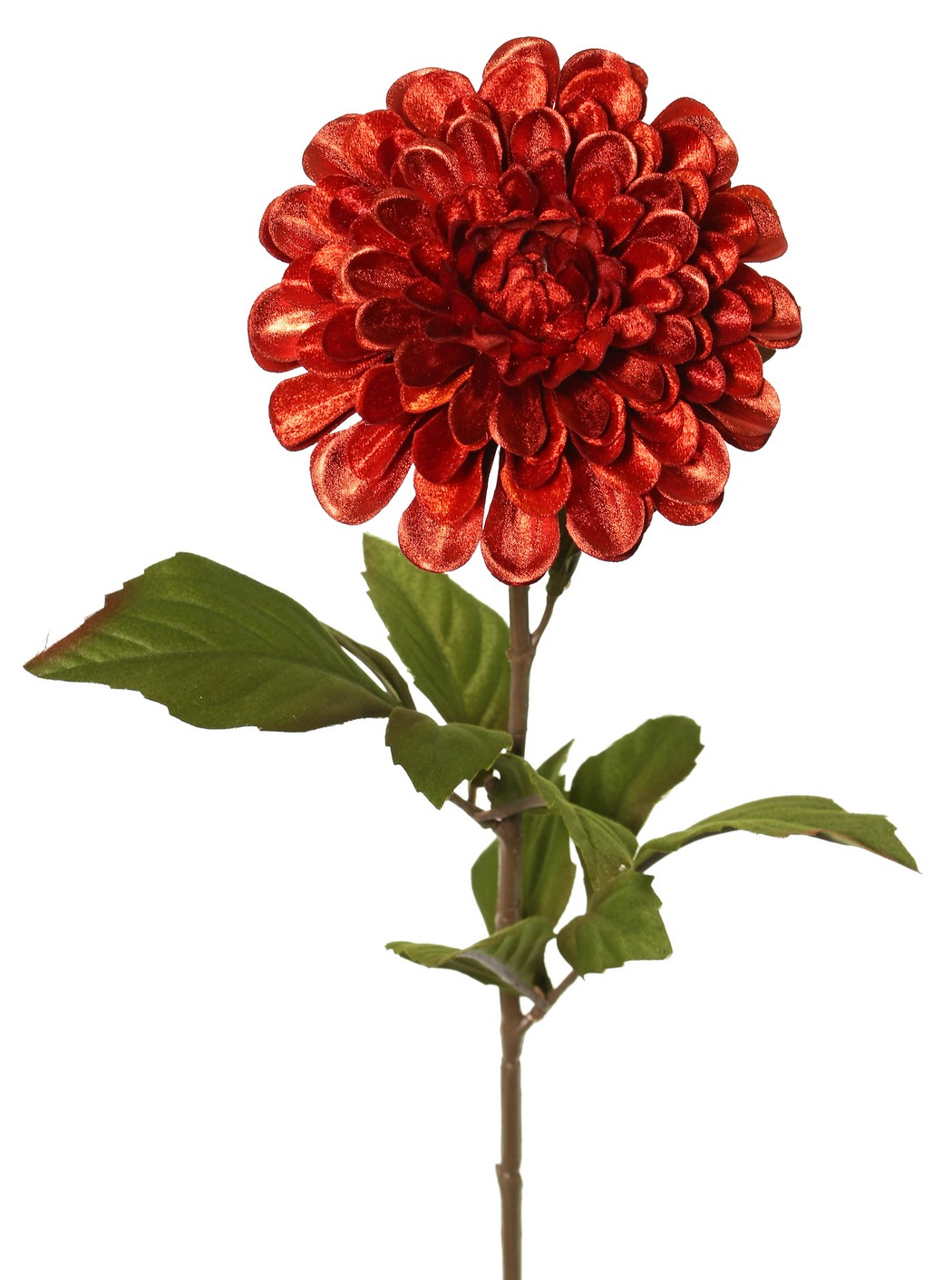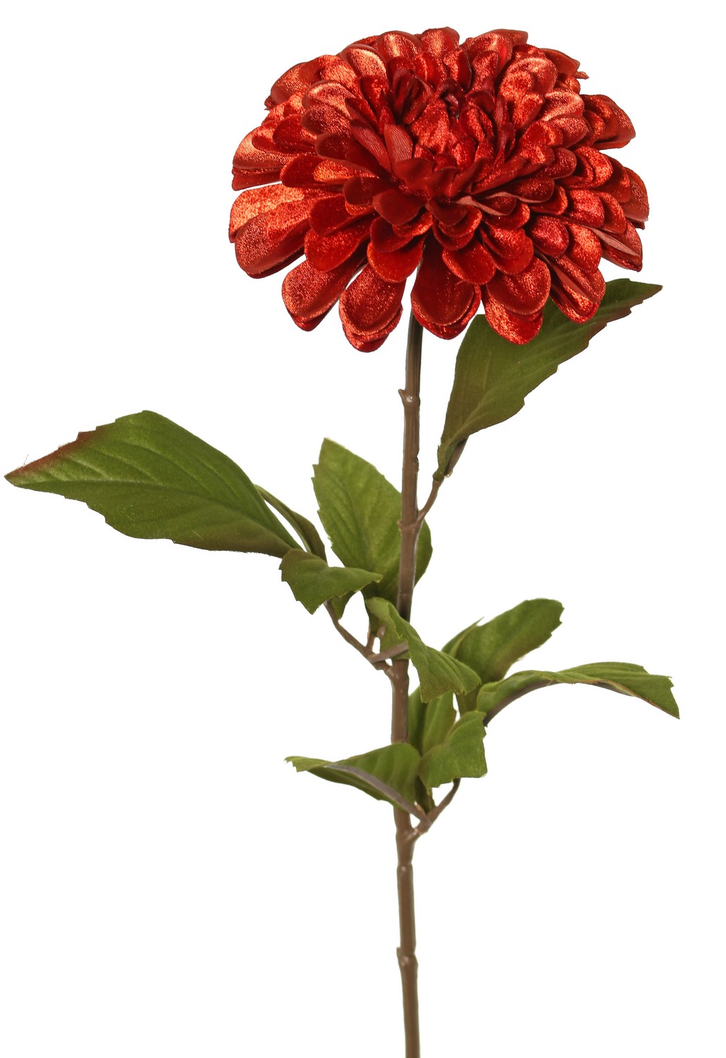 Dahlia Ø 13 cm, velours 'Glamour' avec 3 jeux de feuilles, 58 cm