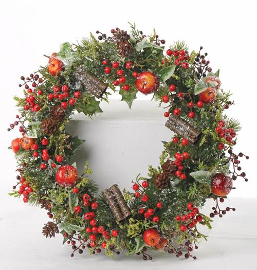 Guirlande avec des pommes, fruits rouges, pommes de pin & hedera & glace congelée, 21cm/37cm