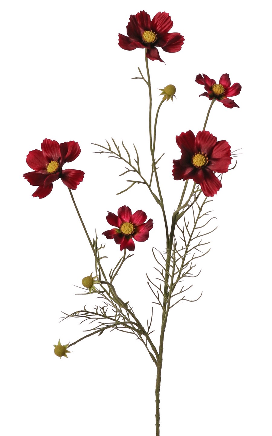 [Cosmea (Cosmos bipinnatus) met 5 bloemen (3x Ø 7 cm, 2x 5 cm), 3 knoppen & 7 bladtoeven, 72 cm, Nu.: 130414BU]: