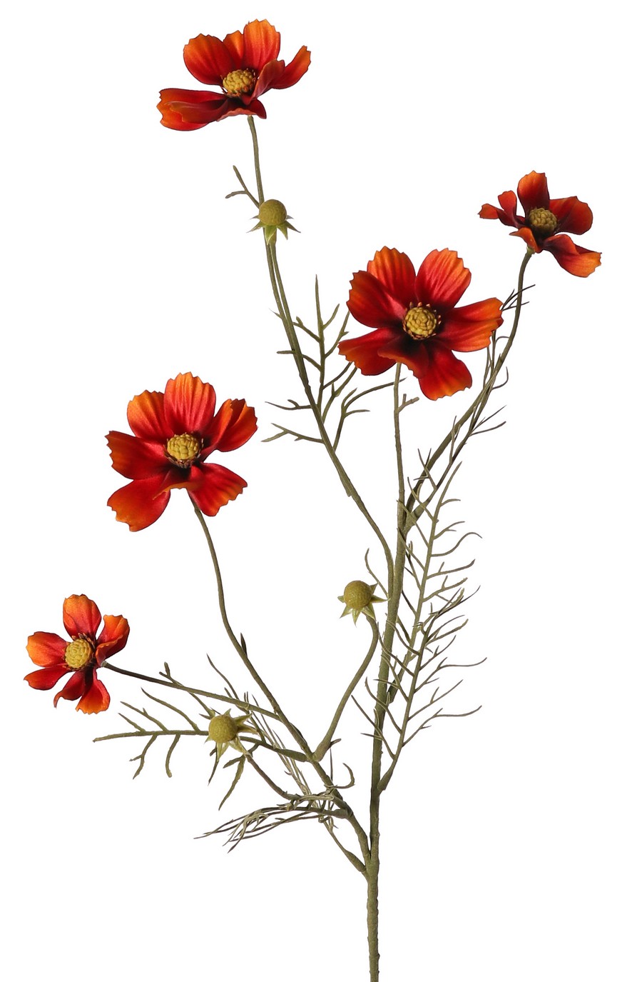 Cosmea (Cosmos bipinnatus) met 5 bloemen (3x Ø 7 cm, 2x 5 cm), 3 knoppen & 7 bladtoeven, 72 cm