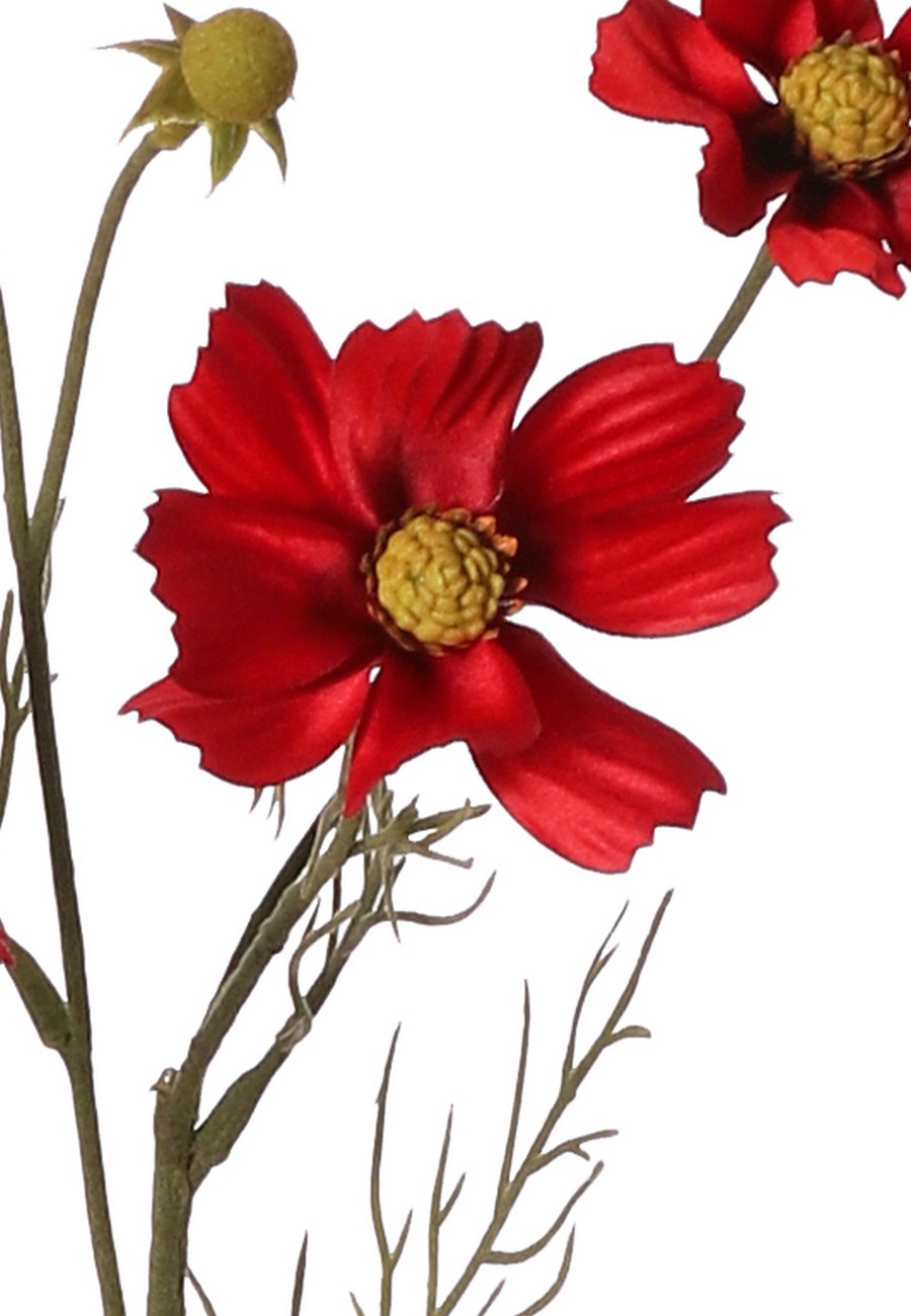 [Cosmea (Cosmos bipinnatus) met 5 bloemen (3x Ø 7 cm, 2x 5 cm), 3 knoppen & 7 bladtoeven, 72 cm, Nu.: 130414RD]:
